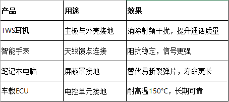 它能直接通过SMT贴片机贴在PCB上,经回流焊固定,实现稳定接地 + EMI屏蔽 + 缓冲保护三重功能。